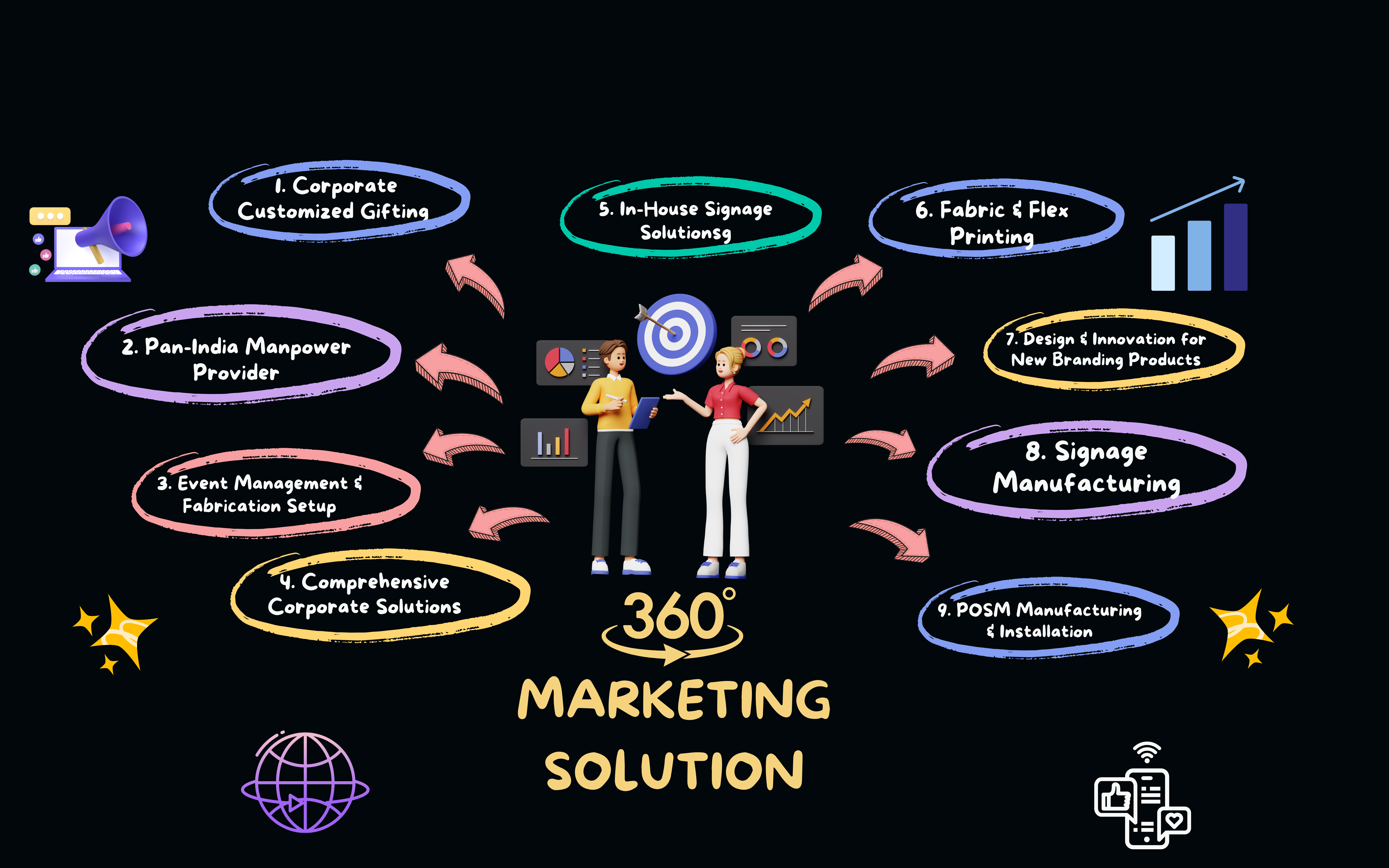 At BRAND ALLY , we provide a full spectrum of innovative marketing and corporate solutions to elevate your brand across India. Our expertise spans across multiple facets of marketing, production, and event management, ensuring a seamless and impactful presence in the market.